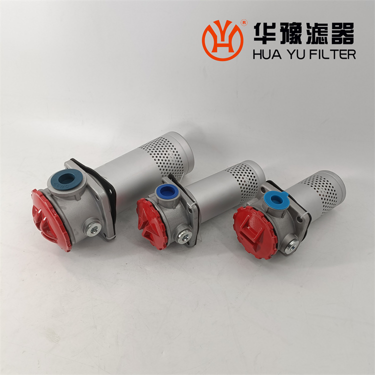 這種過濾器設有濾芯污染堵塞發(fā)訊器和油路旁通閥,當回油壓力達到0.35MPa時,發(fā)訊器發(fā)出開關信號或報警,還可直接從發(fā)訊器的表盤上讀出回油壓力值,以提示操作人員及時更換濾芯,保證系統(tǒng)油液的清潔度。更換濾芯只需旋開過濾器端蓋即可。當回油壓力上升至0.4MPa時,過濾器內的旁通閥便自動卸荷,以避免回油壓力過高造成整個系統(tǒng)工作